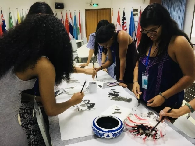 下午的活动为中国文化体验课,由暨大老师讲解中华书法和国画的魅力,大家也拿起毛笔,饶有兴致地创作起来。